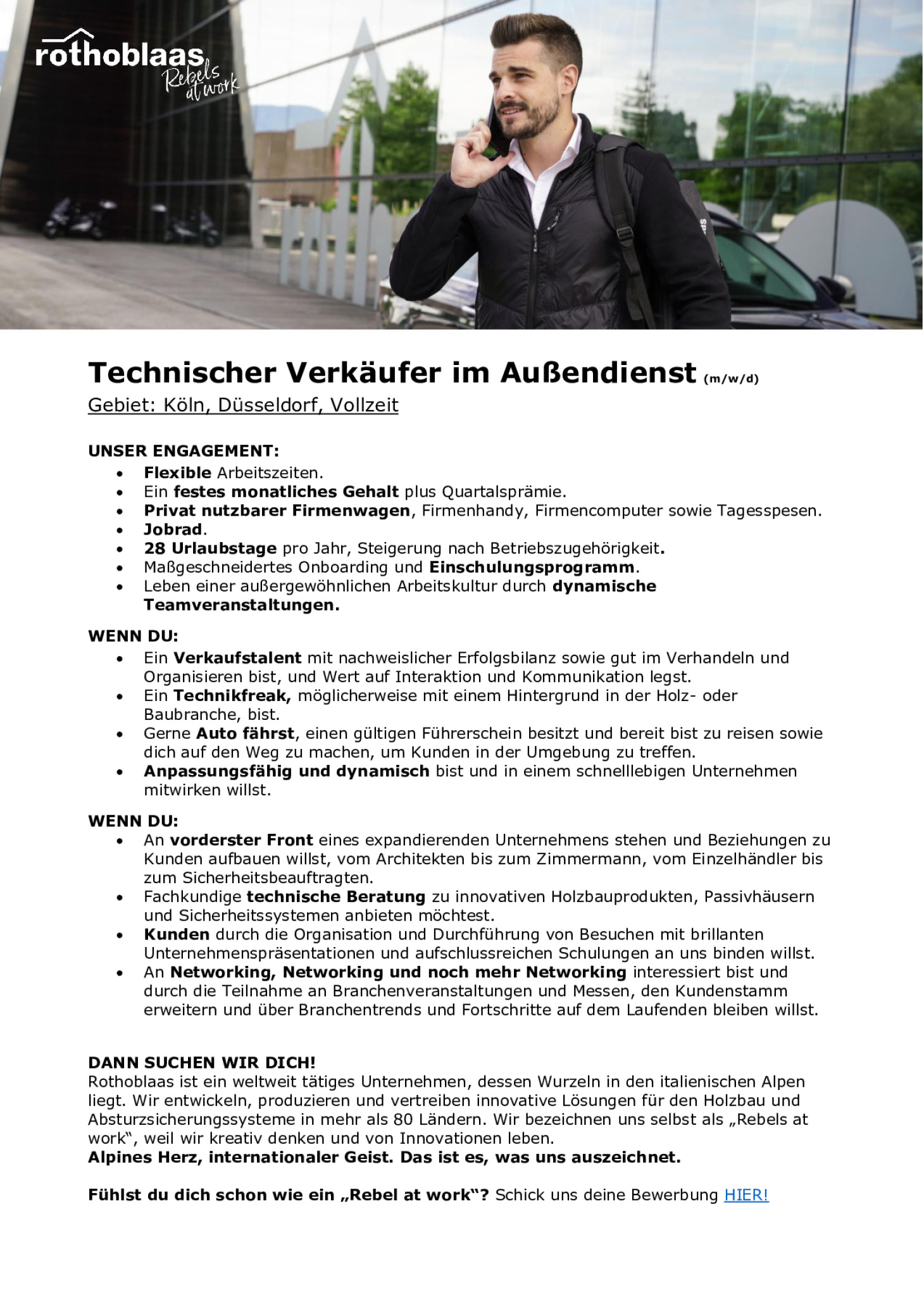 Technischer Verkäufer im Außendienst (m/w/d) - Köln, Düsseldorf